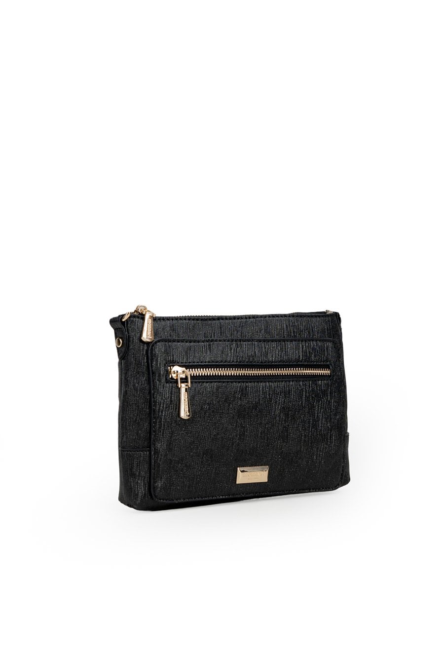 Torba damska z delikatnym połyskiem. Jednokomorowy model z jasną, logowaną podszewką oraz dodatkowymi kieszonkami na drobiazgi. Torebka zawieszona na pasku, który umożliwia noszenie na ramieniu lub crossbody. Torbę należy przechowywać w dołączonym woreczku. Wymiary: 25 cm x 17 cm x 4 cm
