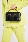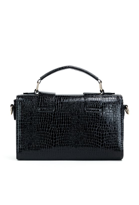 Torba damska zdobiona dwoma dekoracyjnymi paskami z przodu. Jednokomorowy model wykończony jasną, logowaną podszewką, wyposażony w praktyczne kieszonki na drobiazgi. Torbę można nosić w ręku dzięki wygodnej rączce lub na ramieniu, korzystając z dołączonego, regulowanego paska. Torba zapinana klapę z napą oraz suwakiem. Torbę należy przechowywać w dołączonym woreczku. Wymiary: 24 cm x 15 cm x 7,5 cm.