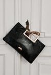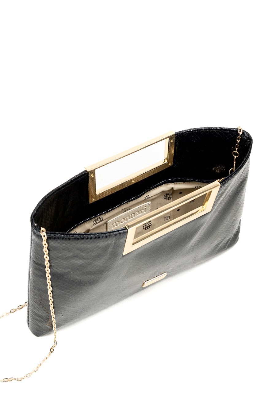 Mała, elegancka torebka damska o wymiarach 31 cm x 20 cm x 4 cm. Model jednokomorowy, z jasną, logowaną podszewką i dodatkową kieszonką na drobiazgi. Torebka do ręki, z możliwością noszenia na ramieniu dzięki łańcuszkowemu paskowi dołączonemu do zestawu. Torebkę należy przechowywać w dołączonym woreczku.