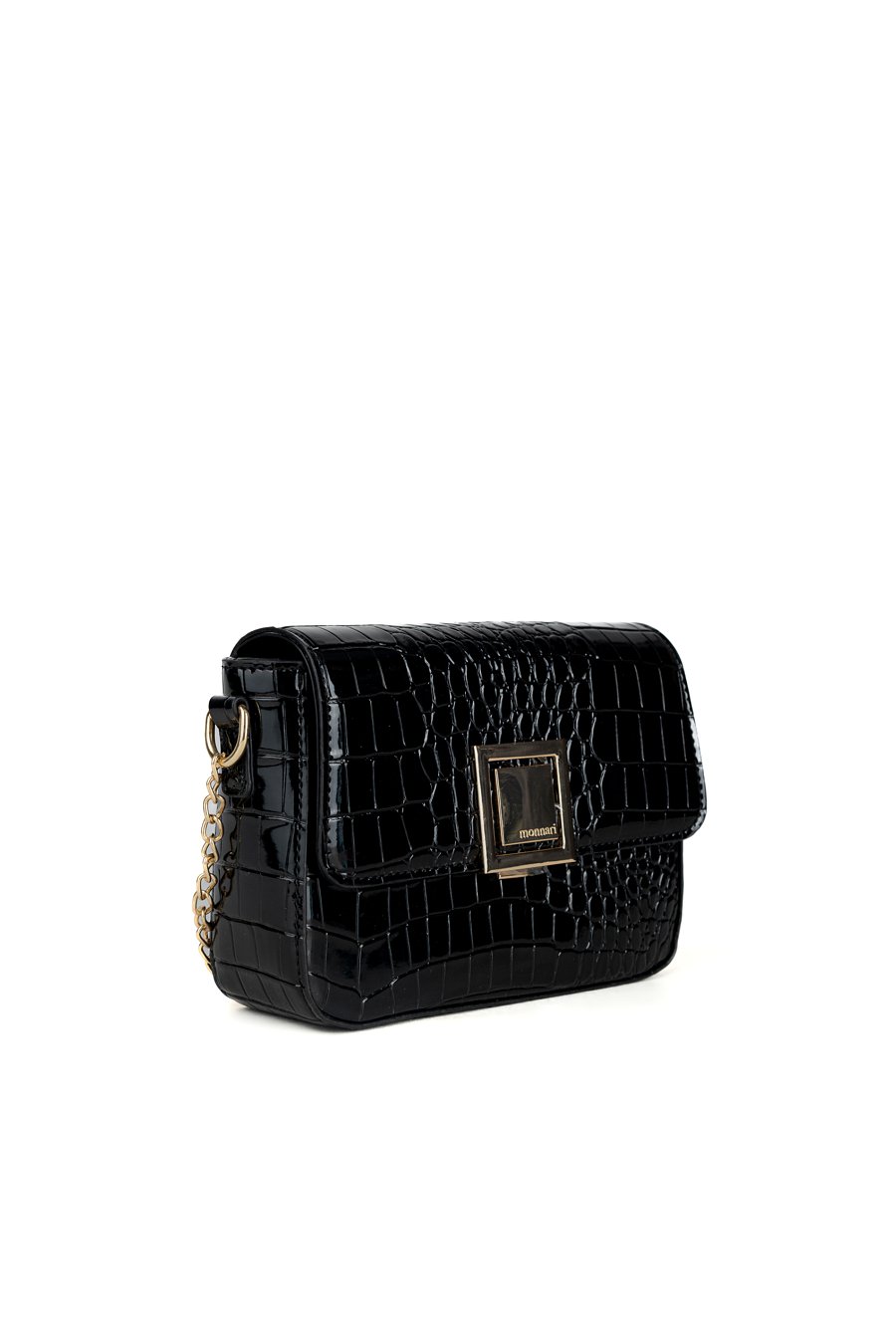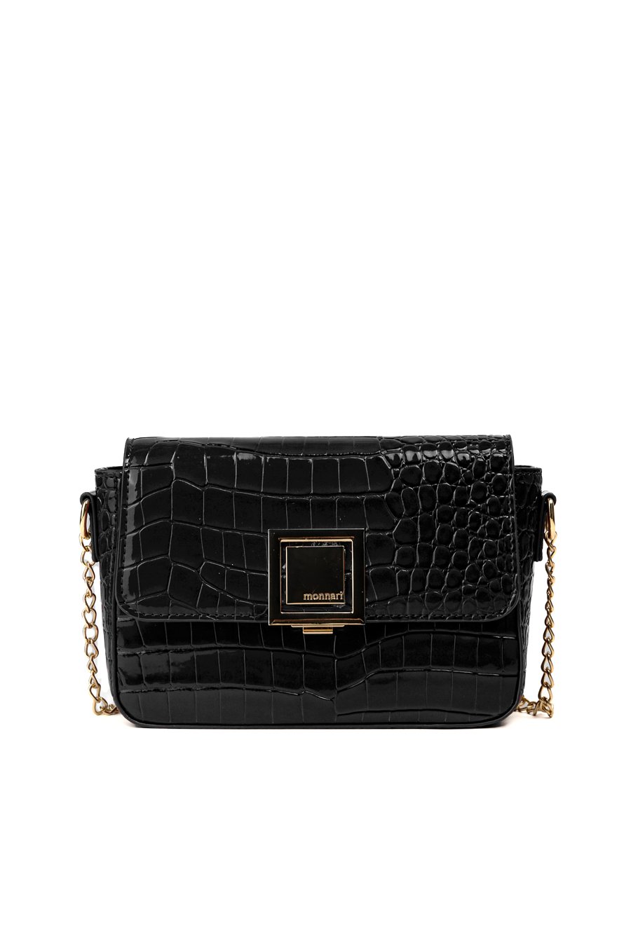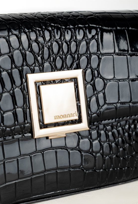Wizytowa mała torebka damska z delikatnym wzorem. Torba z klapą, jednokomorowa o jasnej, logowanej podszewce z dodatkowymi kieszonkami w środku. Zawieszona na regulowanym pasku z ozdobnym elementem łańcuszka, stanowi stylowy dodatek do wieczorowych i eleganckich stylizacji. Wymiary: 20,5cm x 15cm x 5,5cm