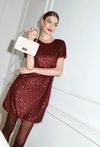 Wizytowa torebka damska o eleganckim, połyskującym wykończeniu. Jednokomorowy model z jasną, logowaną podszewką, zapinany na klapę z dyskretną napą. Torebka wyposażona w sztywną rączkę do trzymania w dłoni oraz dopinany, złoty pasek na łańcuszku, który umożliwia noszenie jej na ramieniu. Torbę należy przechowywać w załączonym woreczku. Wymiary torby: 19,5 cm x 12 cm x 5 cm.