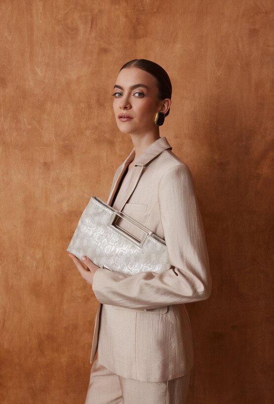 Mała, elegancka torebka damska o wymiarach 31 cm x 20 cm x 4 cm. Model jednokomorowy, z jasną, logowaną podszewką i dodatkową kieszonką na drobiazgi. Torebka do ręki, z możliwością noszenia na ramieniu dzięki łańcuszkowemu paskowi dołączonemu do zestawu. Torebkę należy przechowywać w dołączonym woreczku.