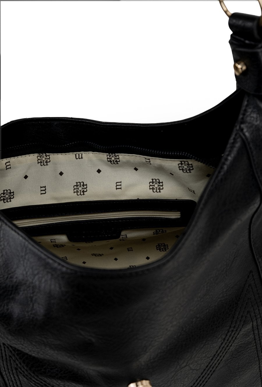 Duża torba damska typu worek o wymiarach 46 × 29,5 × 13 cm to pojemny model idealny na co dzień. Torba jest jednokomorowa, ma jasną, logowaną podszewkę oraz dodatkowe kieszonki na drobiazgi, które ułatwiają organizację. Torba zapinana na suwak oraz mały pasek z napą zapewnia bezpieczne przechowywanie zawartości. Torba zawieszona na rączce wygodnie nosi się w dłoni lub na przedramieniu. Torbę należy przechowywać w dołączonym woreczku.
