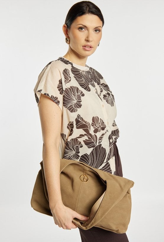 Duża torba damska typu shopper o wymiarach 43 × 27 × 10 cm to pojemny i wygodny wybór idealny na co dzień. Torba jest jednokomorowa, ma jasną, logowaną podszewkę oraz dodatkowe kieszonki na drobiazgi, które ułatwiają organizację. Torba zawieszona na rączce świetnie sprawdzi się do pracy, na zakupy i na codzienne wyjścia. Torbę należy przechowywać w dołączonym woreczku.
