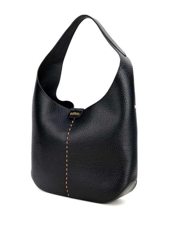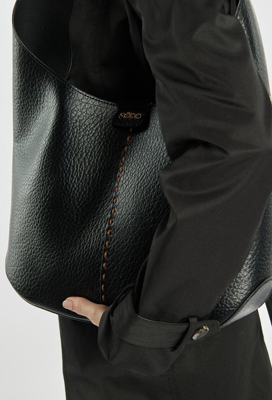 Damska torba typu worek o wymiarach 39 × 27 × 10 cm. Jednokomorowy model zapinany na napę, zawieszony na rączce. Dodatkowym atutem jest przyczepiona saszetka, idealna na najpotrzebniejsze drobiazgi. Torbę należy przechowywać w dołączonym woreczku.