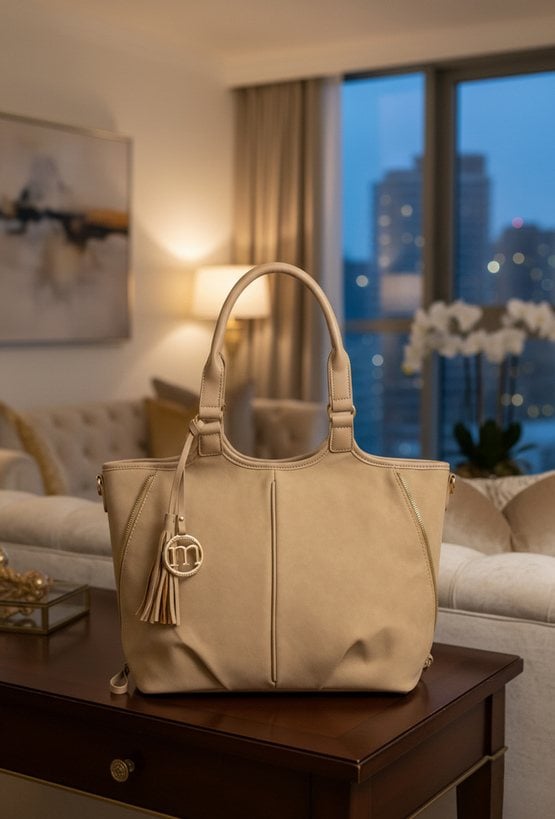 Duża, pojemna torebka damska o wymiarach 42 × 29 × 10 cm- idealna na co dzień, gdy potrzebujesz więcej miejsca. Torba jednokomorowa, wykończona jasną, logowaną podszewką i wzbogacona o praktyczne kieszonki na najpotrzebniejsze drobiazgi. Stylowy charakter podkreślają ozdobne frędzle oraz elegancka zawieszka z logo marki Monnari. Torbę należy przechowywać w dołączonym woreczku.