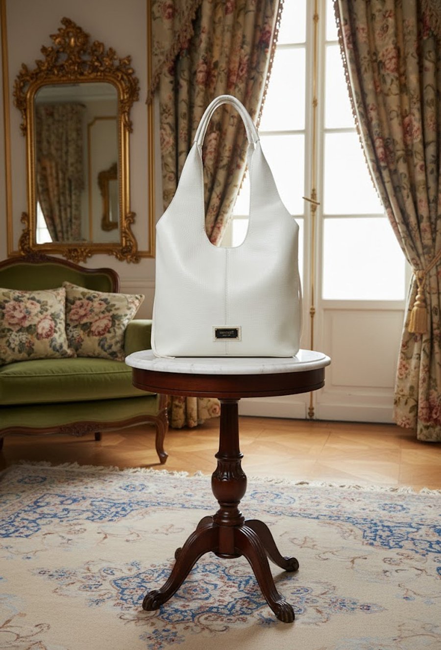 Torba damska typu worek 2w1 – praktyczne i stylowe rozwiązanie na co dzień. Główna torba o wymiarach 43 × 29 × 17 cm ma jednokomorowe wnętrze zapinane na suwak i wygodne rączki do noszenia w dłoni lub na ramieniu. W zestawie znajduje się dodatkowa, mniejsza torebka (32 × 22 × 4 cm) wyposażona w odpinany, wzorzysty pasek. Torbę należy przechowywać w dołączonym woreczku.