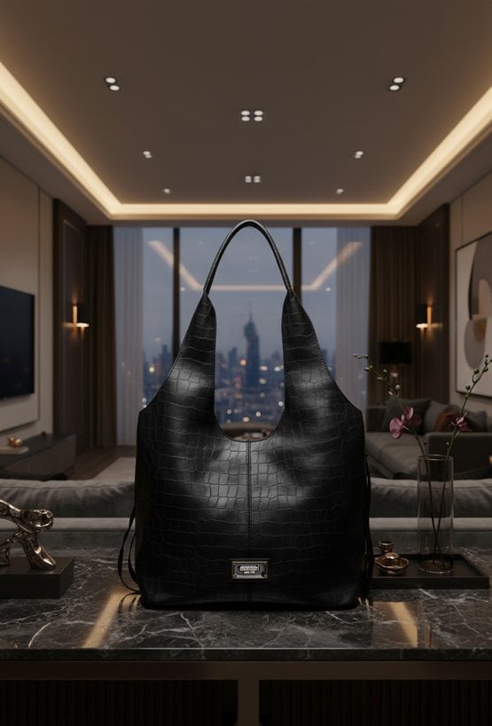 Torba damska typu worek 2w1 – praktyczne i stylowe rozwiązanie na co dzień. Główna torba o wymiarach 43 × 29 × 17 cm ma jednokomorowe wnętrze zapinane na suwak i wygodne rączki do noszenia w dłoni lub na ramieniu. W zestawie znajduje się dodatkowa, mniejsza torebka (32 × 22 × 4 cm) wyposażona w odpinany, wzorzysty pasek. Torbę należy przechowywać w dołączonym woreczku.