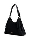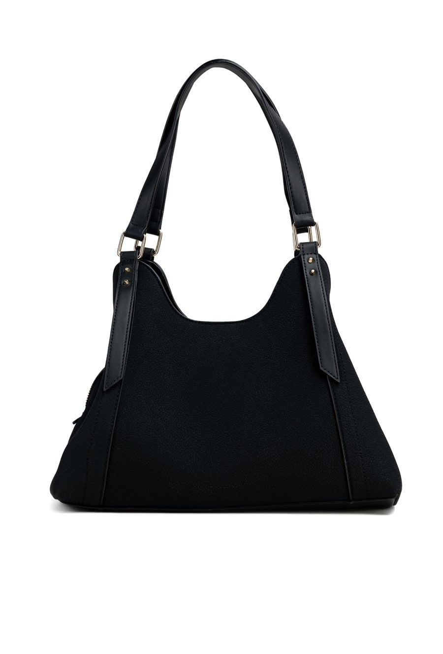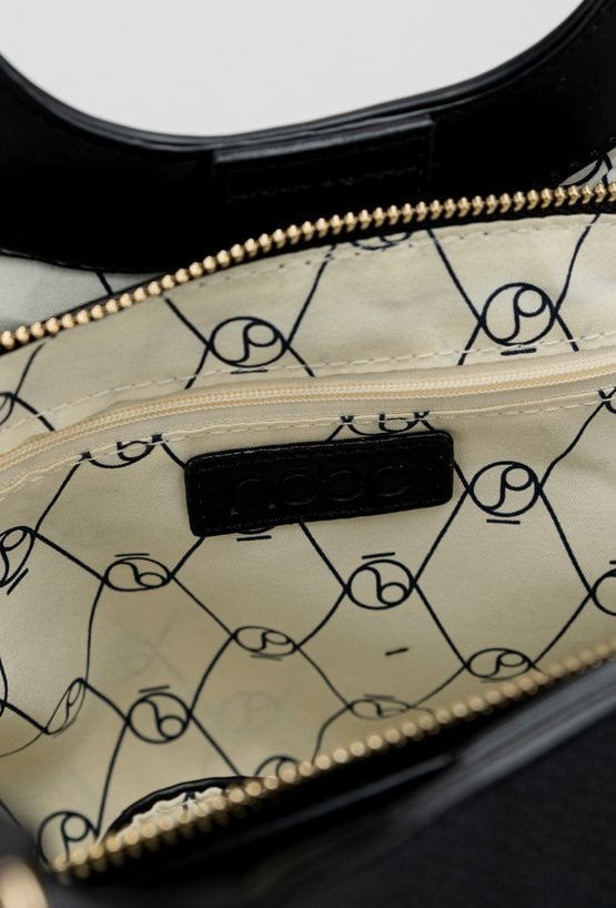 Torba damska typu worek o wymiarach 32 × 20,5 × 9,5 cm. Model trzykomorowy z jasnymi, logowanymi podszewkami oraz dodatkowymi kieszonkami na drobiazgi. Jedna komora zapinana na suwak, a dwie pozostałe na napę. Torba zawieszona na rączkach. Torbę należy przechowywać w dołączonym woreczku.