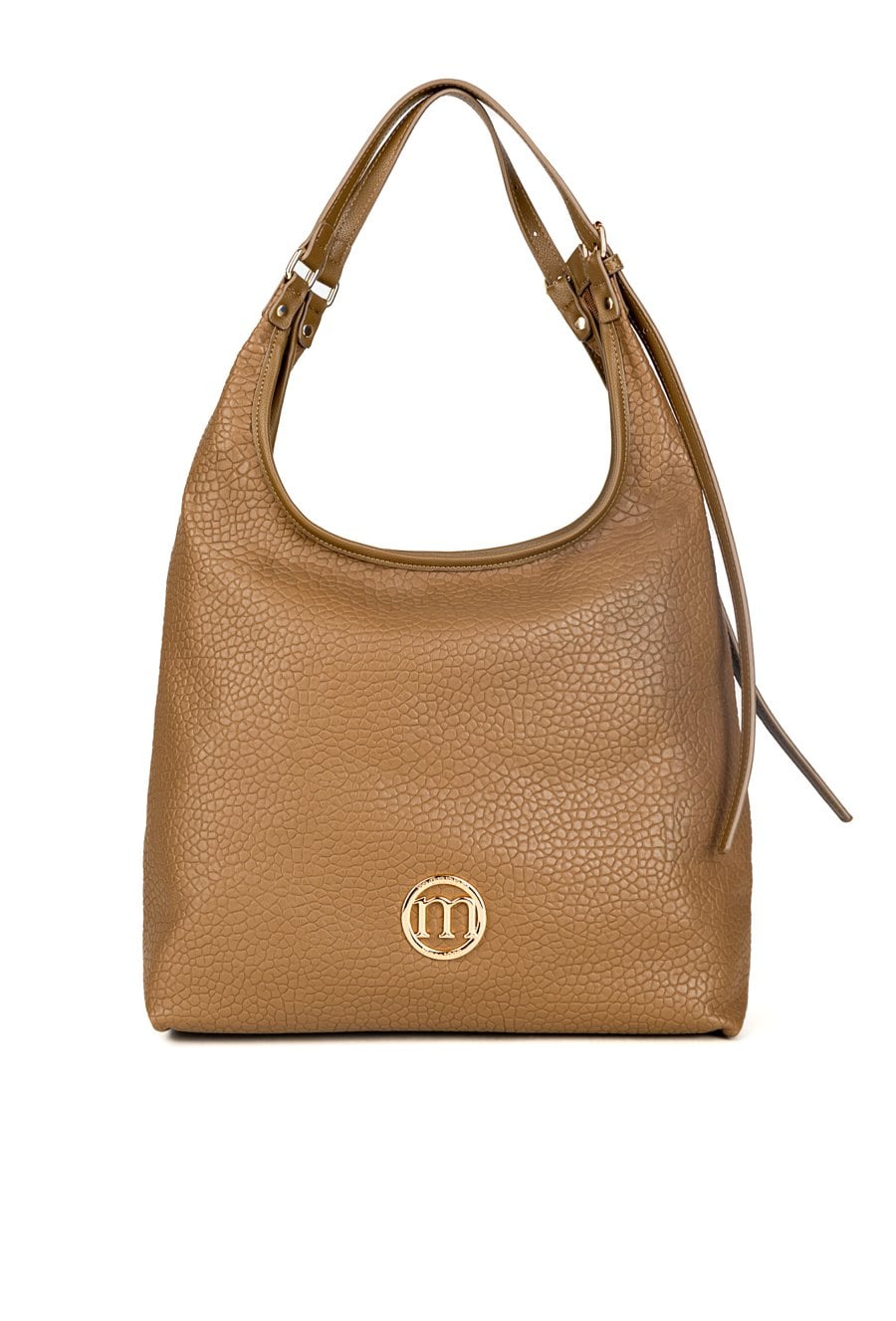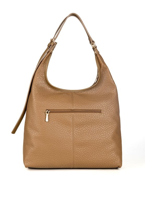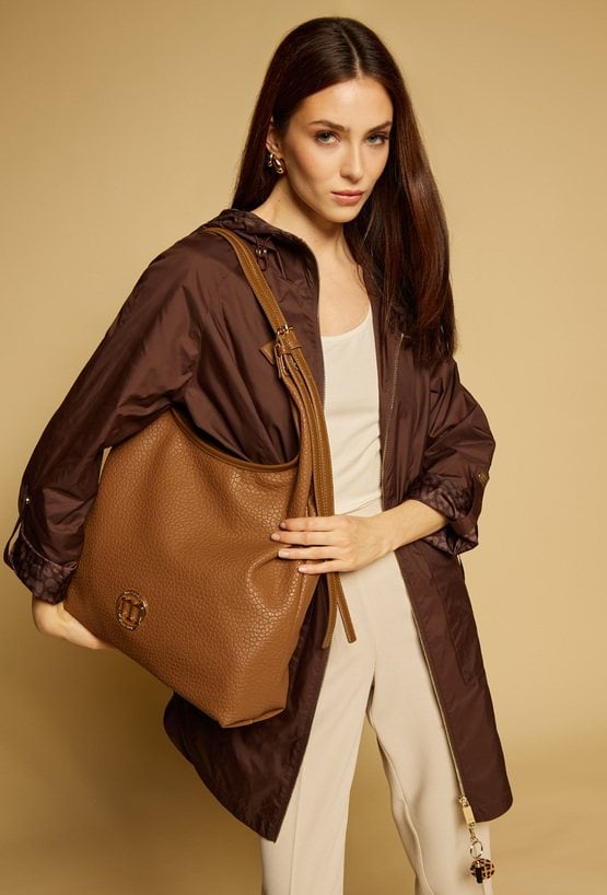 Damska torba typu worek, jednokomorowa, z jasną podszewką ozdobioną logo Monnari. Zapinana na suwak, zapewnia wygodę, bezpieczeństwo i porządek w przechowywaniu. Wyposażona w liczne kieszenie, które ułatwiają organizację niezbędnych drobiazgów. Torba zawieszona na regulowanej rączce. Torbę należy przechowywać w dołączonym woreczku. Wymiary: 40 cm x 30 cm x 12 cm.