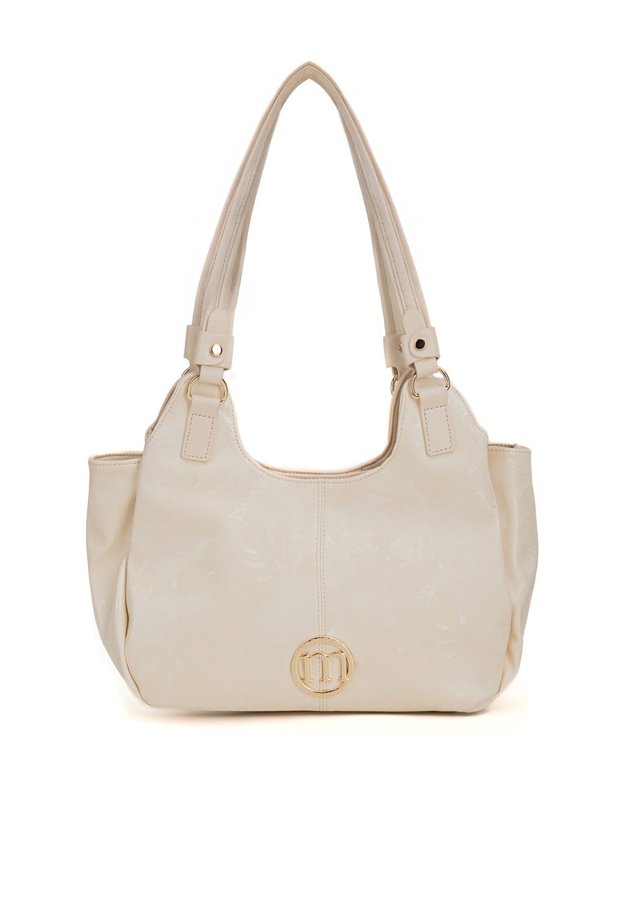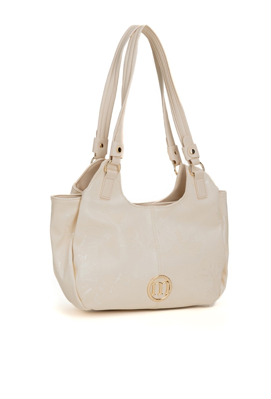 Torba damska typu worek z delikatnym wzorem to praktyczny i pojemny model na co dzień. Torba jest trzykomorowa, ma jasne, logowane wnętrza oraz dodatkowe kieszonki na drobiazgi, które ułatwiają organizację. Torba ma dwie komory zapinane na napy oraz środkową komorę na suwak, co zapewnia wygodę i bezpieczne przechowywanie rzeczy, a rączki gwarantują komfort noszenia w dłoni lub na przedramieniu. Torbę należy przechowywać w dołączonym woreczku. Wymiary: 38 cm x 20 cm x 13 cm.