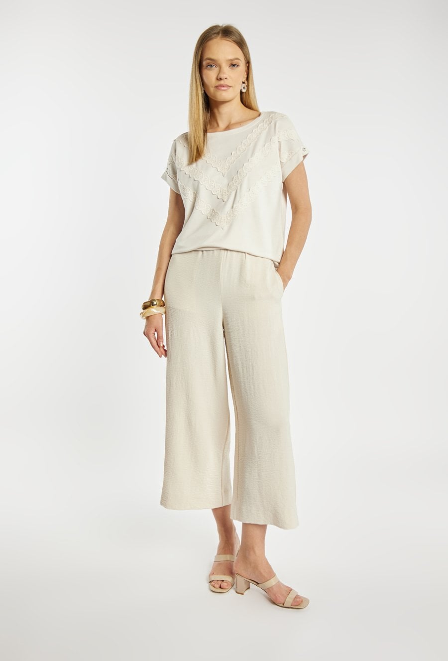 Prać ręcznie w temperaturze 30 °C z podobnymi kolorami bez namaczania. Nie wybielać i nie chlorować. Prasować w temperaturze maksymalnej 110 °C po lewej stronie lub przez bawełniane płócienko. Nie czyścić chemicznie. Suszyć na wisząco na suszarce do odzieży. Nie suszyć w suszarce bębnowej. Prać wywrócone na lewą stronę. Nie prasować po koronce/siatce Włókno celulozowe zawarte w materiale może powodować wykurcz produktu w procesie konserwacji. Zjawisko to jest naturalną cechą tego włókna.