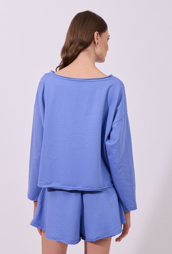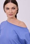 Bluza damska o luźnym, swobodnym kroju z długim rękawem. Model z szerokim, półokrągłym dekoltem, który nadaje całości casualowego charakteru. Krótszy fason podkreśla nowoczesny styl. Idealna do codziennych, wygodnych stylizacji. Modelka na zdjęciu ma 177 cm wzrostu i prezentuje rozmiar S.