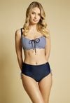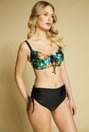 Majtki kąpielowe o podwyższonym stanie. Model z marszczeniem oraz wiązaniem po bokach, umożliwiającym regulację i dopasowanie. Majtki świetnie sprawdzą się w plażowych stylizacjach. Stwórz komplet, dobierając pasujący stanik kąpielowy. Kod do góry od kostiumu: BRA0070. Modelka na zdjęciu ma 177 cm wzrostu i prezentuje rozmiar 36.