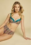 Stylowe majtki kąpielowe. Model o klasycznym kroju zapewnia wygodę noszenia oraz doskonałe dopasowanie do sylwetki. Polecamy uzupełnić swoją stylizację o stanik kąpielowy z tym samym wzorem, tworząc modny i spójny komplet plażowy. Kod do stanika: 26L-BRA0020.