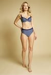 Majtki kąpielowe o klasycznym kroju w paskowany wzór. Model zapewnia wygodę noszenia oraz dobre dopasowanie do sylwetki. Polecamy uzupełnić swoją stylizację o stanik kąpielowy z tym samym wzorem, tworząc elegancki komplet plażowy. Modelka na zdjęciu prezentuje rozmiar 36.