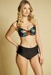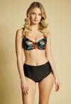 Stylowy stanik kąpielowy o dopasowanym kroju, który doskonale podkreśla sylwetkę. Model z efektownym, tropikalnym wzorem oraz marszczeniem z przodu, które nadaje całości modnego charakteru. Stanik zapewnia komfort noszenia i świetnie sprawdzi się w letnich stylizacjach plażowych. Stwórz komplet, dobierając pasujące majtki kąpielowe. Kod: PAN0090. Modelka na zdjęciu ma 177 cm wzrostu i prezentuje rozmiar 36.