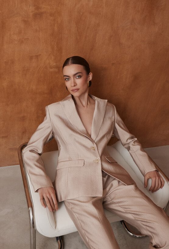 Eleganckie spodnie damskie o prostym kroju z długą nogawką. Model z praktycznymi kieszeniami, który zapewnia wygodę i elegancki wygląd. Spodnie można zestawić z pasującą bluzą. Kod do bluzy: 26L-JUM0550. Modelka na zdjęciu ma 177 cm wzrostu i prezentuje rozmiar 36.