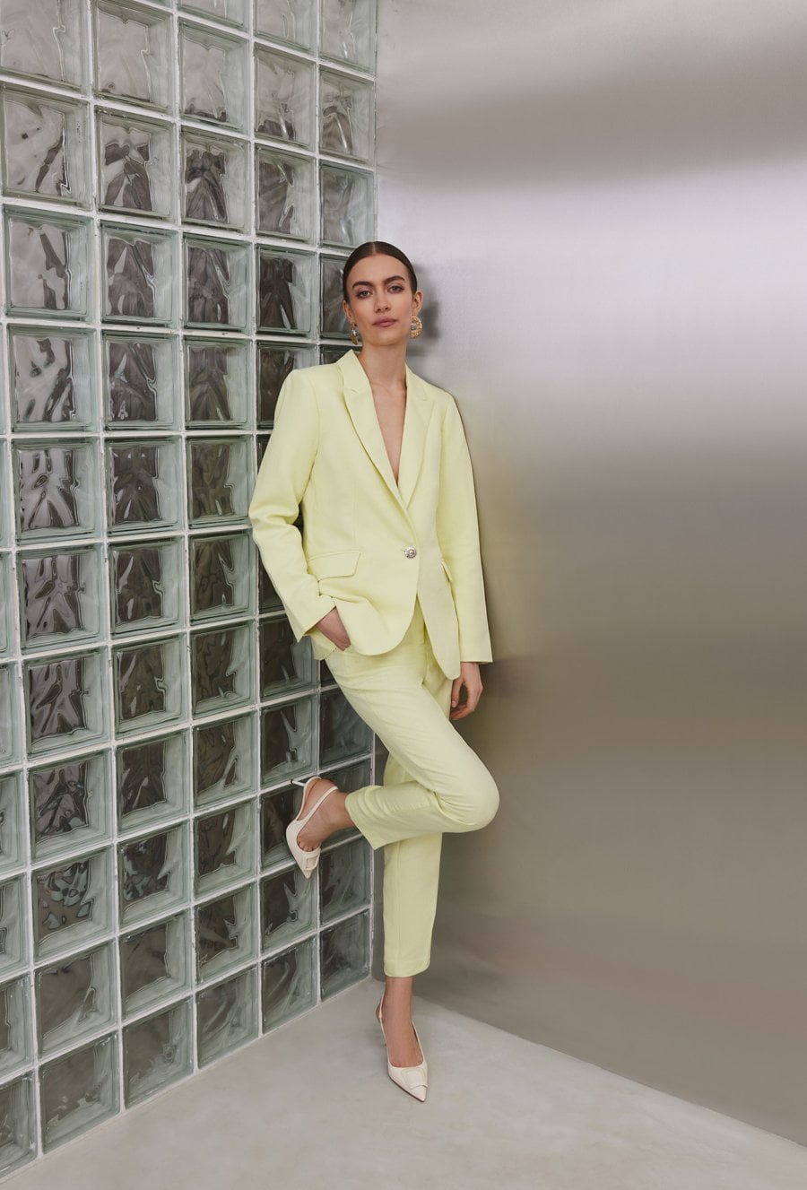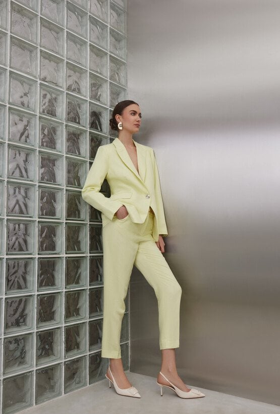 Spodnie damskie o eleganckim, dopasowanym kroju. Model z prostą nogawką oraz klasycznym zapięciem na haftki w pasie. Eleganckie spodnie damskie z dodatkiem wiskozy gwarantują komfort noszenia, przewiewność oraz przyjemne dopasowanie. Doskonale sprawdzą się w stylizacjach biznesowych i wizytowych- w połączeniu z marynarką, kod do niej: 26L-BZR0320. Modelka na zdjęciu ma 177 cm wzrostu i prezentuje rozmiar 36.