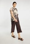 Lekkie spodnie letnie o swobodnym, szerokim kroju, idealne na ciepłe dni. Model z elastyczną talią i luźno opadającymi nogawkami, świetnie sprawdzi się w letnich stylizacjach codziennych i wakacyjnych. Doskonałe do zestawienia z t-shirtem, topem lub lekką bluzką. Modelka na zdjęciu ma 177 cm wzrostu i prezentuje rozmiar 36.