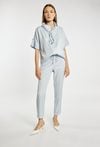 Prać w temperaturze 30 °C w delikatnym cyklu z podobnymi kolorami. Nie wybielać i nie chlorować. Prasować w temperaturze maksymalnej 110 °C po lewej stronie lub przez bawełniane płócienko. Nie czyścić chemicznie. Suszyć na wisząco na suszarce do odzieży. Nie suszyć w suszarce bębnowej. Prać wywrócone na lewą stronę.