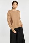 Stylowy sweter damski o klasycznym kroju z długim rękawem. Model z okrągłym dekoltem oraz subtelnym, minimalistycznym wykończeniem. Sweter zapewnia komfort noszenia i doskonale sprawdzi się w codziennych oraz eleganckich stylizacjach, stanowiąc uniwersalny element garderoby. Modelka na zdjęciu ma 177 cm wzrostu i prezentuje rozmiar S/M.