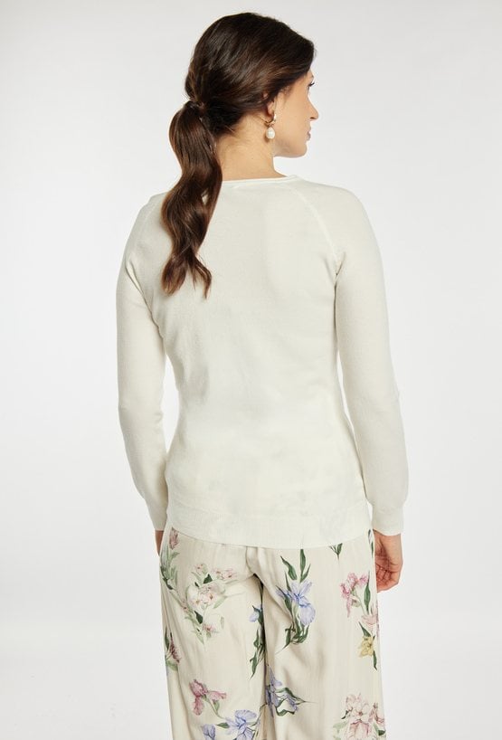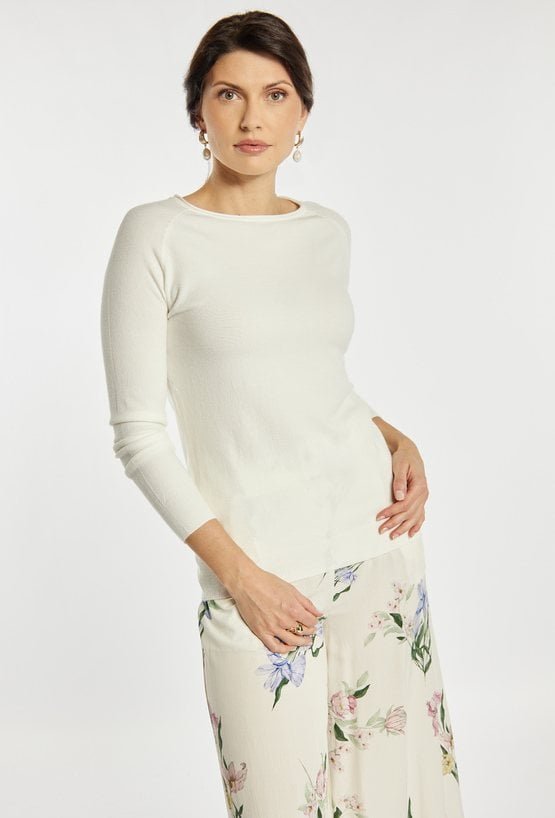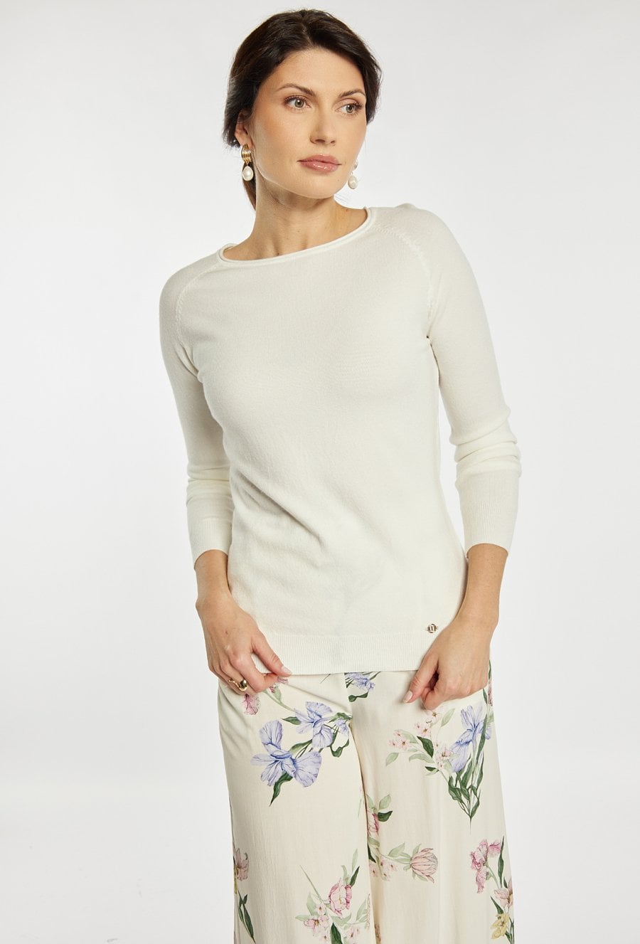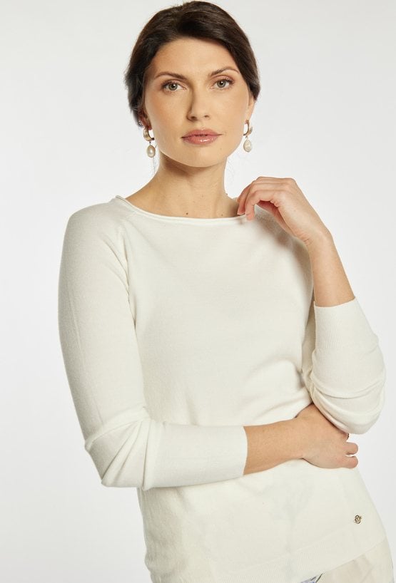 Stylowy sweter damski o klasycznym kroju z długim rękawem. Model z okrągłym dekoltem oraz minimalistycznym wykończeniem, który sprawdzi się w wielu stylizacjach. Sweter zapewnia komfort noszenia i doskonale pasuje do codziennych oraz eleganckich zestawów. Modelka na zdjęciu ma 177 cm wzrostu i prezentuje rozmiar S/M.