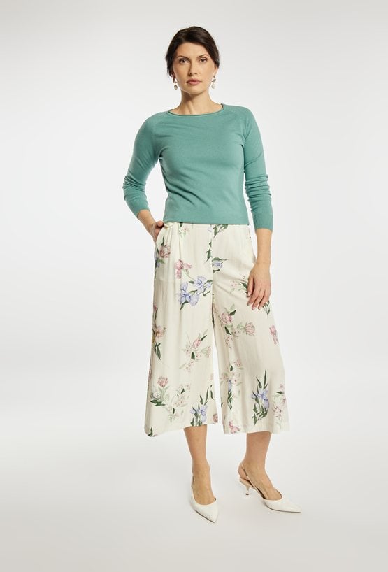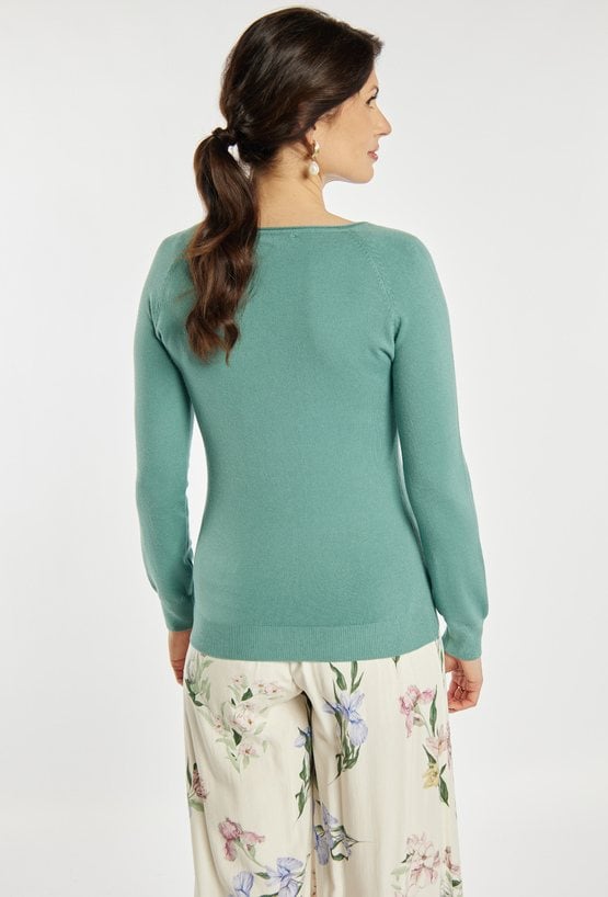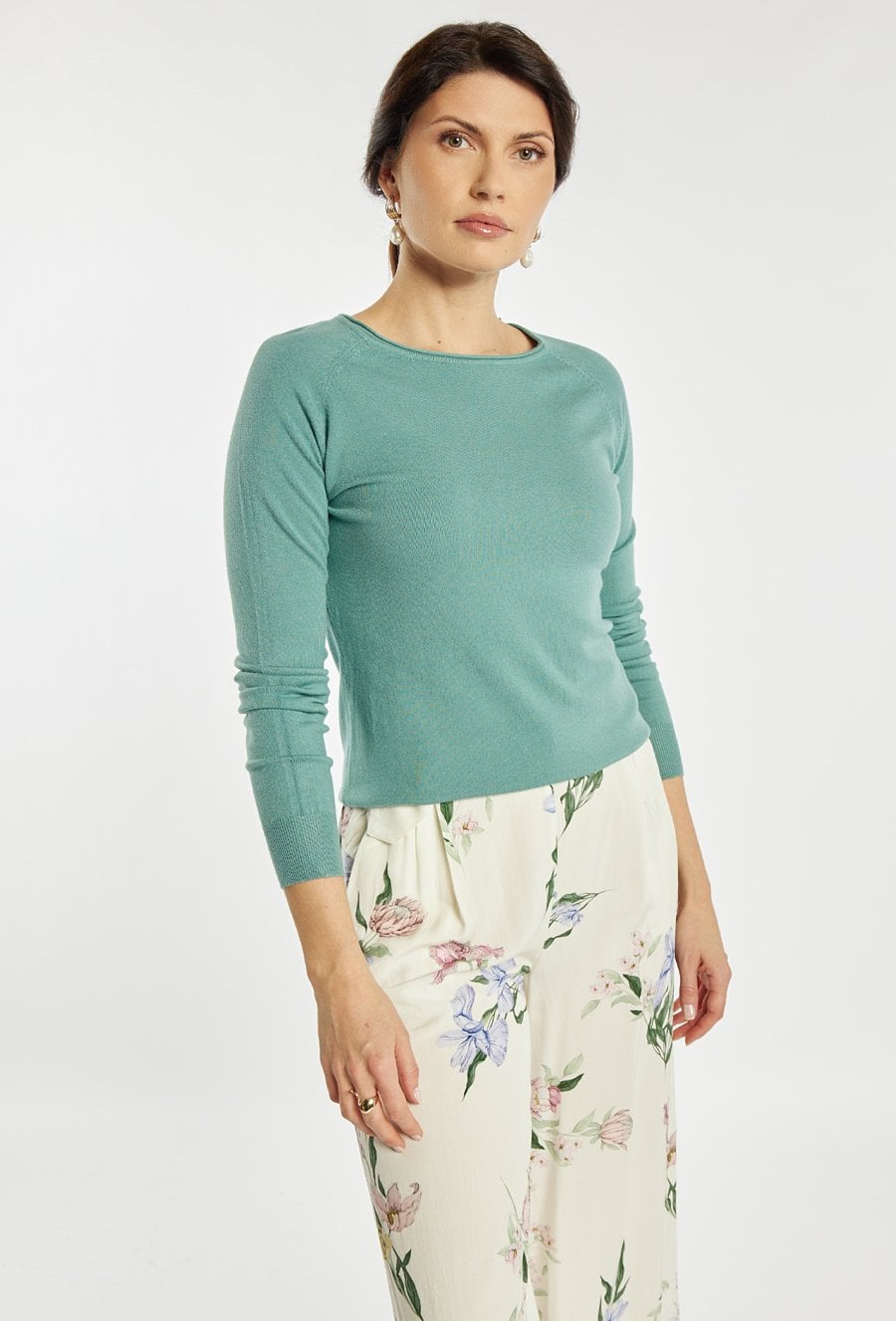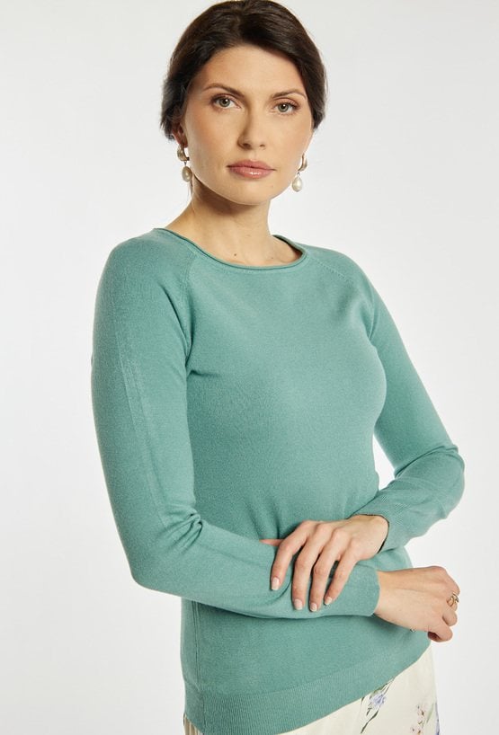 Stylowy sweter damski o klasycznym kroju z długim rękawem. Model z okrągłym dekoltem oraz minimalistycznym wykończeniem, który sprawdzi się w wielu stylizacjach. Sweter zapewnia komfort noszenia i doskonale pasuje do codziennych oraz eleganckich zestawów. Modelka na zdjęciu ma 177 cm wzrostu i prezentuje rozmiar S/M.