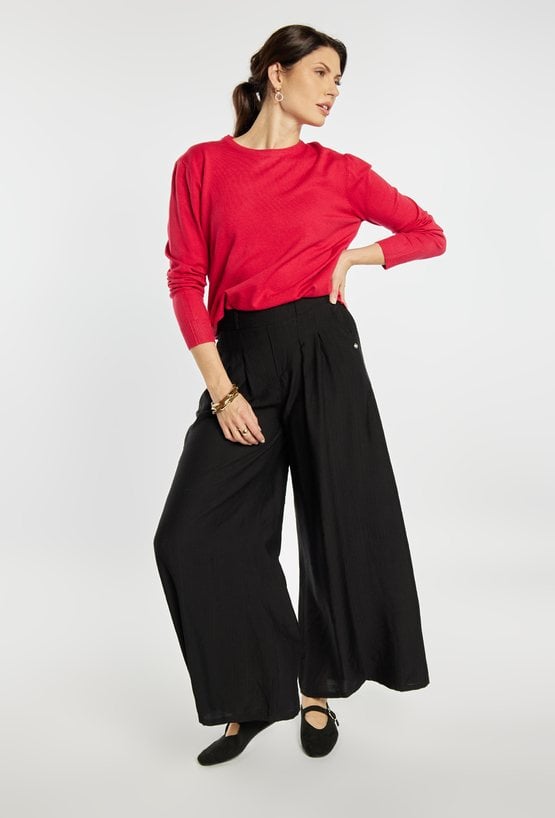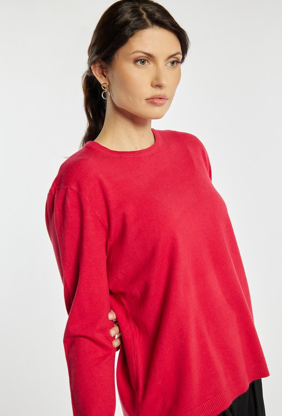 Stylowy sweter damski o klasycznym kroju z długim rękawem. Model z okrągłym dekoltem oraz minimalistycznym designem, który sprawdzi się w wielu stylizacjach. Sweter zapewnia komfort noszenia i doskonale pasuje do codziennych oraz eleganckich zestawów. Modelka na zdjęciu ma 177 cm wzrostu i prezentuje rozmiar S/M.