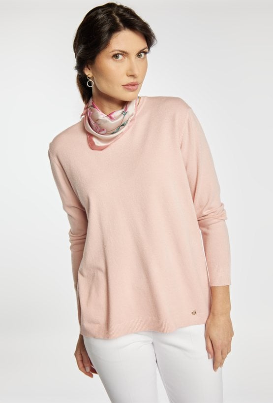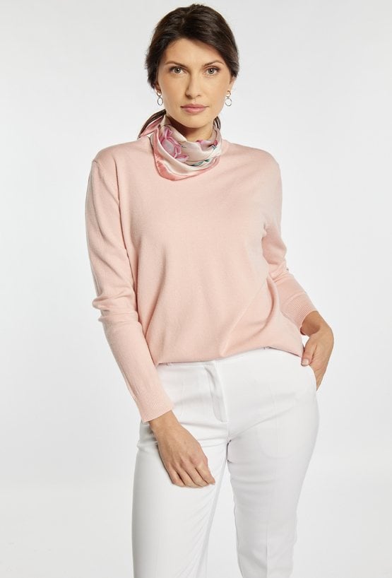Stylowy sweter damski o klasycznym kroju z długim rękawem. Model z okrągłym dekoltem oraz minimalistycznym designem, który sprawdzi się w wielu stylizacjach. Sweter zapewnia komfort noszenia i doskonale pasuje do codziennych oraz eleganckich zestawów. Modelka na zdjęciu ma 177 cm wzrostu i prezentuje rozmiar S/M.