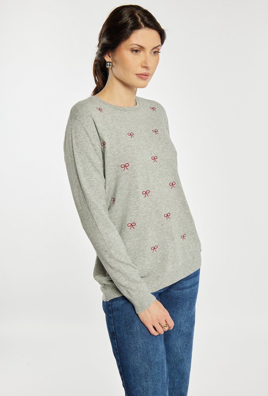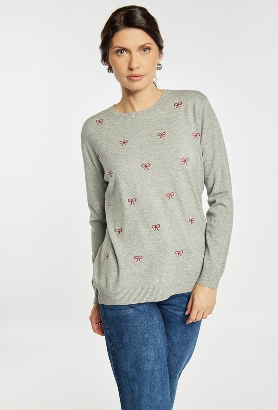 Sweter damski z kokardkami