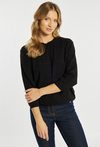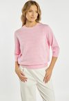 Sweter damski o klasycznym, uniwersalnym kroju. Model z długim rękawem oraz półokrągłym dekoltem. Ażurowy splot w subtelne, poziome wzory nadaje całości lekkości i eleganckiego charakteru. Damski sweter doskonale sprawdzi się w codziennych oraz bardziej stylowych stylizacjach. Modelka na zdjęciu ma 177 cm wzrostu i prezentuje rozmiar S/M.