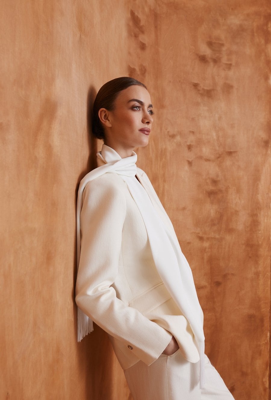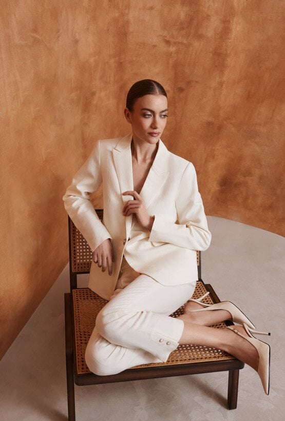 Elegancka marynarka damska o klasycznym kroju z długim rękawem. Model z kołnierzem i klapami, zapinany na guzik, który podkreśla ponadczasowy charakter stylizacji. Marynarka doskonale sprawdzi się w eleganckich i biznesowych stylizacjach, do pracy oraz na różne uroczystości. Polecamy zestawić z pasującymi spodniami z tej samej kolekcji. Kod do spodni: 26L-TRU1020. Modelka na zdjęciu ma 177 cm wzrostu i prezentuje rozmiar 36.